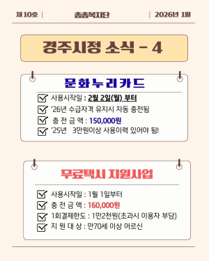 주낙영 경주시장은 “고향사랑기부제는 고향을 응원하고 지역 발전에 동참할 수 있는 의미 있는 제도”라며, “설 명절을 맞아 경주의 우수한 특산품을 답례품으로 선택하고, 기부를 통해 따뜻한 나눔에 함께해 주..
